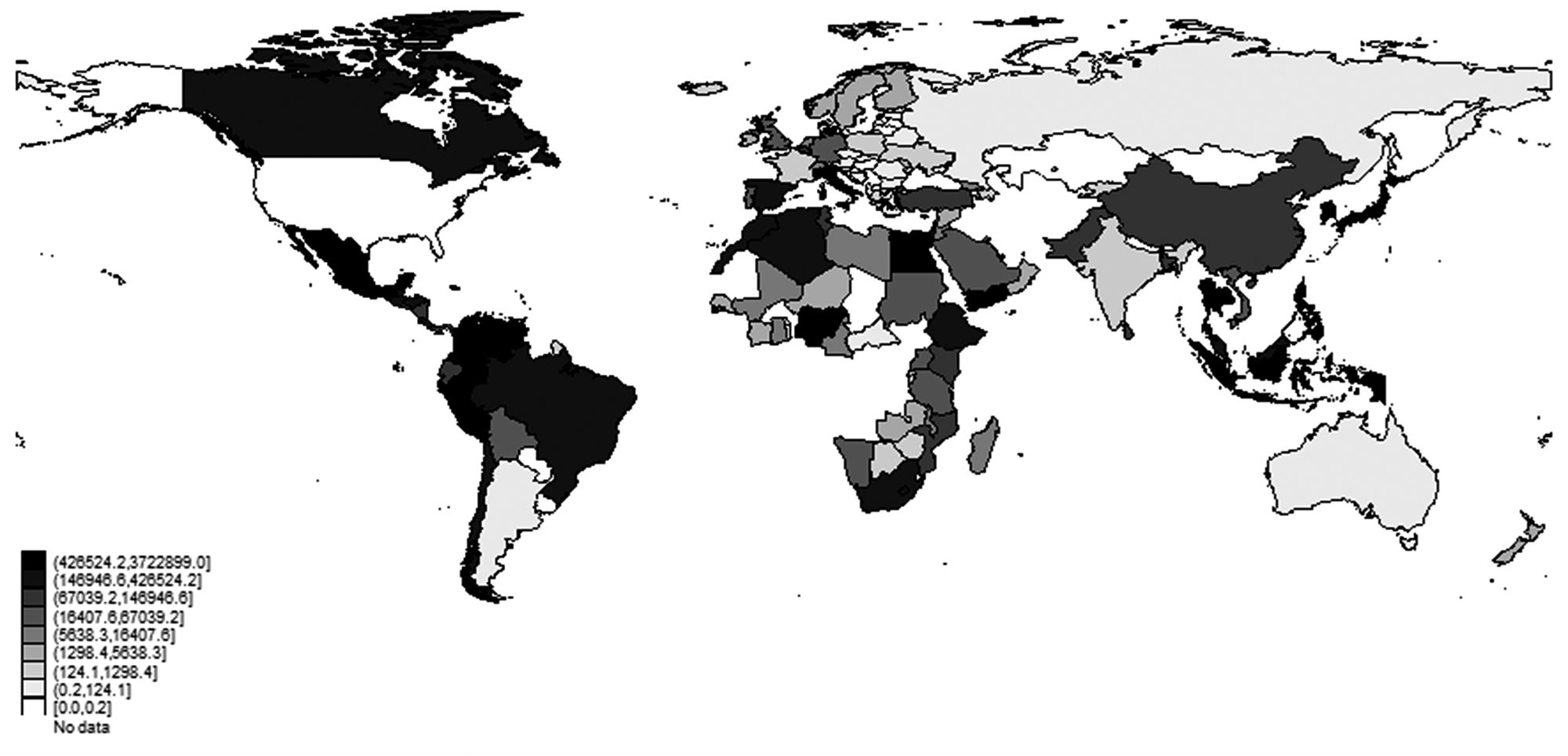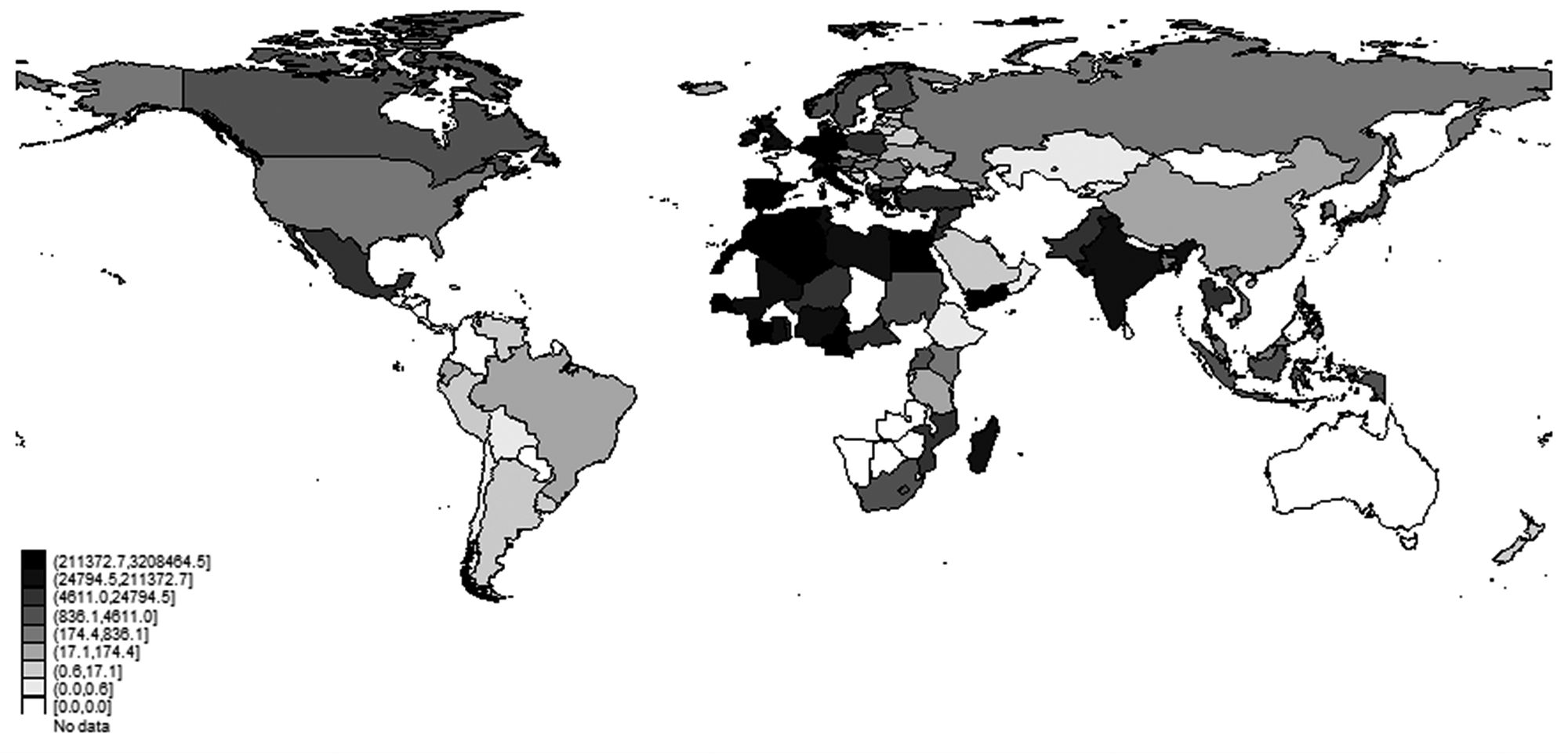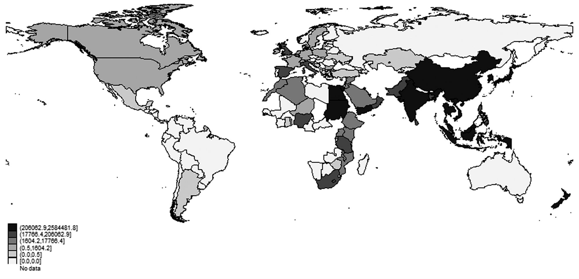 This dataset was originally developed by Keith Head, Thierry Mayer, and John Ries (2010). As usual, contiguity is a dummy variable that takes the value 1 if the importer and the exporter share a common border and zero otherwise. Common language is a dummy variable equal to 1 if both countries share a common language. Bilateral distance has also been taken from Geodist, the CEPII distance dataset (Head, Mayer & Ries, 2010; Head & Mayer, 2014). Information on the existence of bilateral relationships (trade agreement in force) has been taken from Sousa (2012). This is a dummy variable that takes the value 1 if there was a bilateral trade agreement in force between the importing and the exporting country in a selected year, and zero otherwise. World Trade Organization (WTO) membership of different countries over time comes from the CEPII gravity set, which in turn is based on the information provided on the WTO official website. Since trade in wheat came to be under the WTO treatment only after the Uruguay round of negotiations, two dummy variables have been included; bothwtopre takes the value 1 if both the importing and the exporting country were WTO members before 1994 and zero otherwise; bothwtopost takes the value 1 if both the importing and the exporting country were WTO members between 1995 and 2010, and zero otherwise. Data on GDPs is expressed in real terms (1990 Int. Geary–Khamis $) and has been obtained from the Maddison-Project database (see Bolt & Zanden [2014] for more information on the underlying methodology). For certain years and countries, this information has been complemented with data on GDP growth from the World Development Indicators database (2016). Data on population also comes from World Bank (2016). Finally, data on wheat production is measured in real terms (tonnes) and comes from FAO (2016).