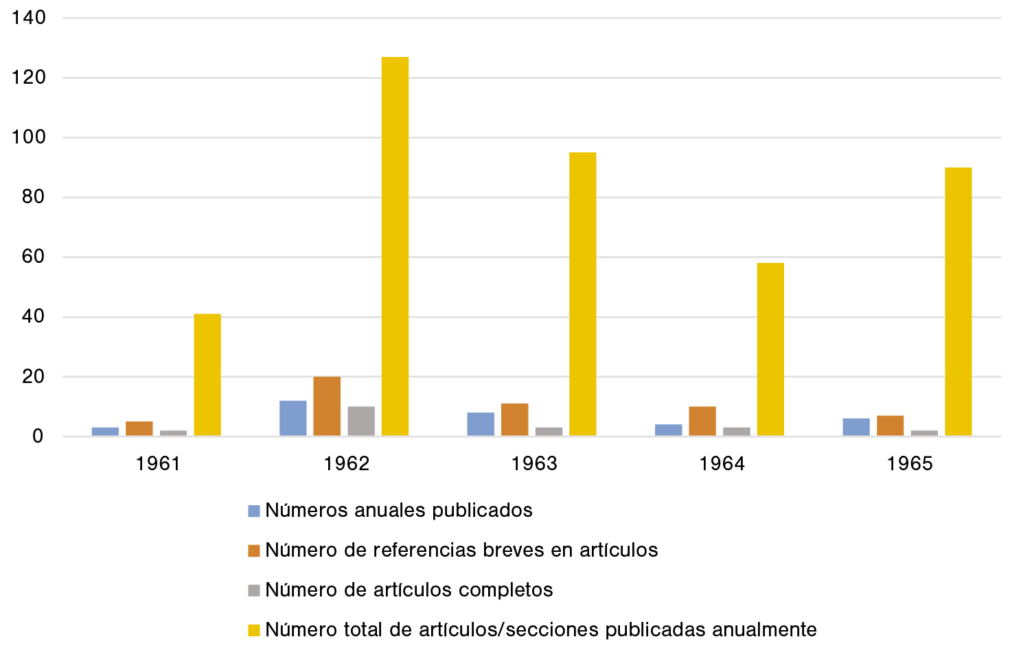 Proporción de artículos completos sobre mujeres en la REA, 1961-1965